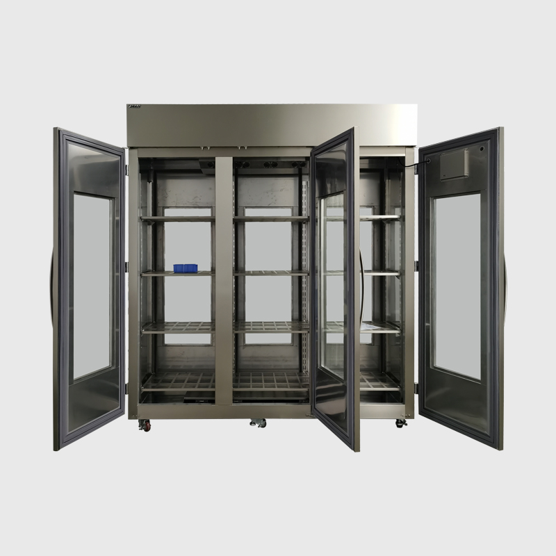 1、柜 門:大面積優質雙層鋼化玻璃組成,柜門裝有永磁密封膠條,確保柜內的密閉性。