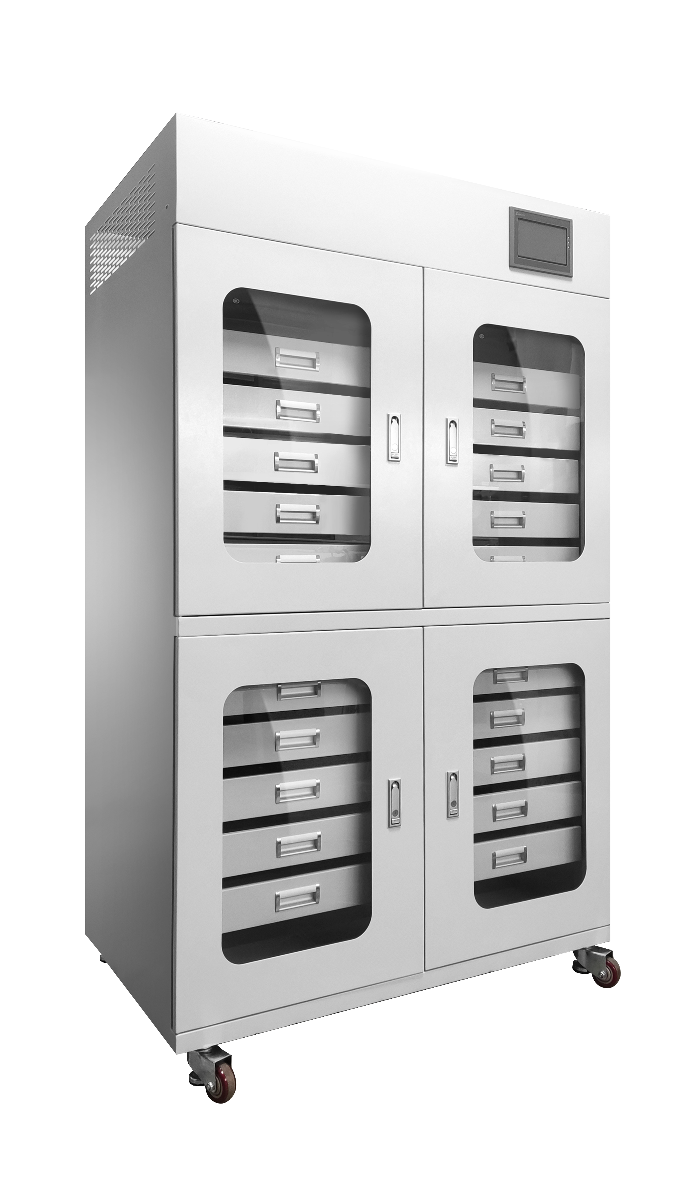 恒濕柜的設計非常人性化,內部空間布局合理,可以滿足各種尺寸和形狀的文物存放需求。柜門采用高強度的防刮、防彈玻璃,既能保證文物的可靠,又能讓人清晰地觀察到文物的細節。柜體的材質也非常講究,一般采用防銹、防潮、防火的金屬材料,耐用且環保。